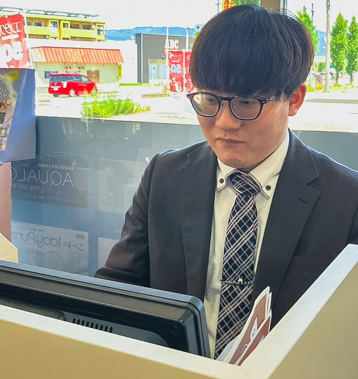 その中で出会ったのがメガネスーパー。学歴に関わらない給与設定になっており、「ここなら公平に挑戦できる」と感じて応募を決意。接客や小売のイメージは全くありませんでしたが、迷わず入社を選びました。